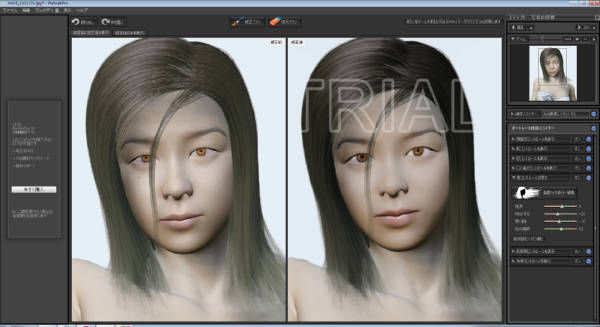 左が元画像で、右が修正後。(体験版なので、TRIALの透かしが入ります)