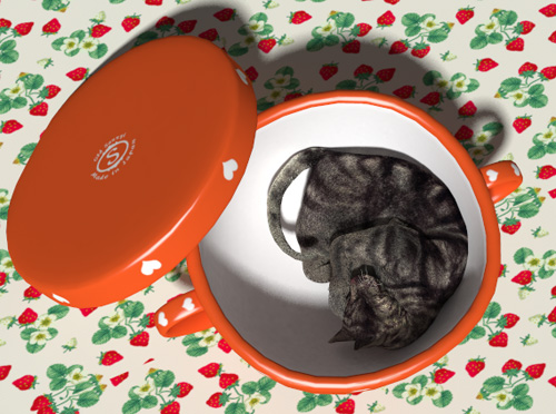 カップのマテリアルが4種類だったのでネコも4匹にしようかと思っていたのですが、あまりに横長になりすぎるので、ポザネコはお留守番です。左からミレネコ、momimomi、wapi_kitten2です。