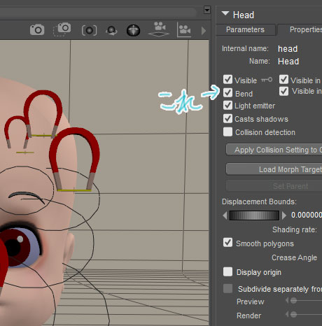でも、bendにレチェックが入ったままだと、今度はheadやeyeを動かそうとした時にエライ事になります