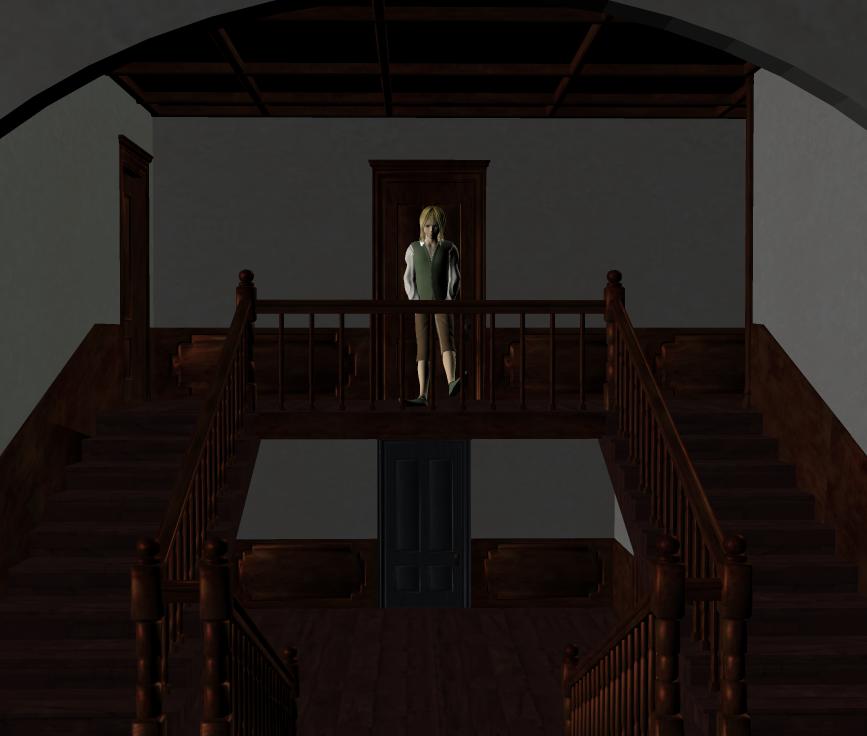 画面には映っていませんが、ちょうどカメラの後ろに、結構大きな食卓机がありました。でも部屋というより、階段の踊り場に見えるんだけど、古い屋敷ってこういうものなのでしょうかね。