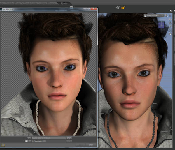 DSで自分が普段Poserでやってるみたいなレンダリングができると良いのですが、レンダラーが違うからがんばっても同じにはならないですよね。