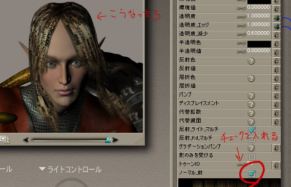垂れ目の修正って難しいんだよねーとか思ってたら、なんかあっさり垂れ目じゃなくなったし、エルフ耳って難しいよねーとか思ったけど、これまたあっさり、それっぽいのができました。(さすがに、真横に向けることはできなかったけど)