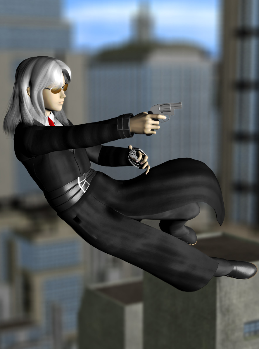 サスケさんちでマトリックス風と書かれていたので、もうマトリックス風しか思いつかなかったヨ。(でも、ポーズはA3についてたやつの手の角度を変えただけだったり)