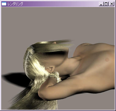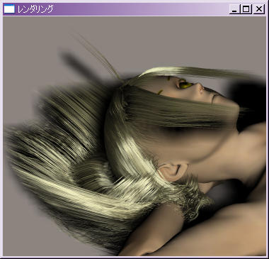 テストレンダしてみたら、ライト位置失敗してて暗くて見えない&後ろ髪がボサボサだった、ってことで後ろ髪の設定を見直して再計算。何を計算してるのか、私はさっぱり分かっていませんが。