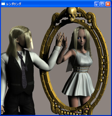 絵として描くとなると、手前のキャラの顔も出したいし、鏡に映った顔もだしたいし、でもそうなると現実的にそういう映り方が可能なのか否か?