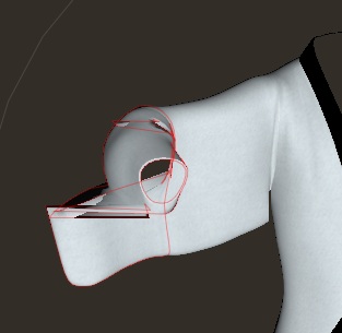 それを調整するのですが、自分で適当にやってもうまくいかなかったので、隣に変換元のM3用の服を出して、輪を選択してコピー→H3用服の同じパーツの輪にコピー……と繰り返して、左右にパーツがあるものは、左側だけやっておけば、シンメトリー→左から右、で調整しました。