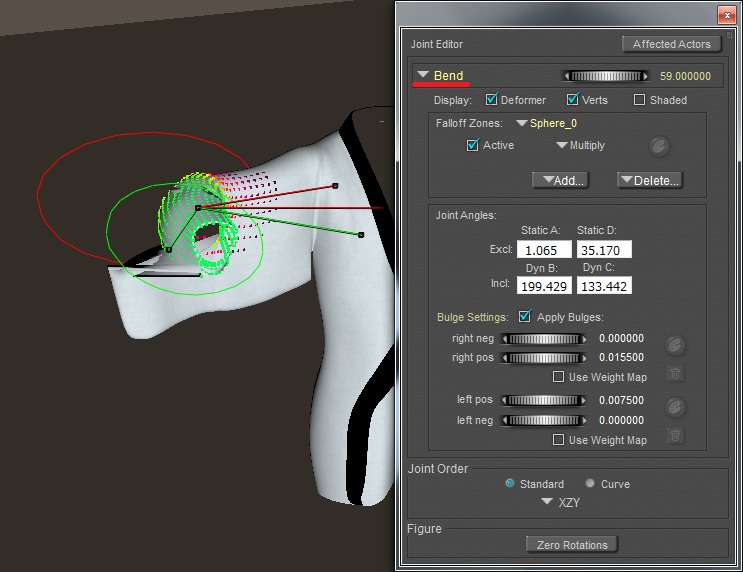 のとこをクリックして▼Bend、Twist、Sideだっけ?とかにすると、緑と赤の輪が表示されます。
