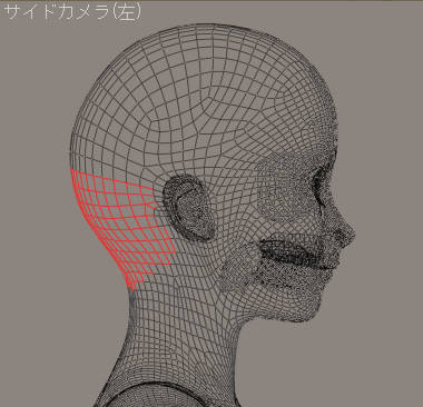 この時、左右対称に選択できるように、表示をワイヤに、サイドカメラ(右でも左でも)にしておきます。