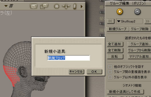 新しく作ったグループ(画像は、Skullcap2の方)が選択されている状態で、グループ編集パレットにある『新規小道具として作成』をクリック。