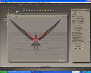 左右の羽は、胸部分の羽にペアレントしておきました。これで、胸部分の羽を選択して動かせば、残りの羽もついてくるので。