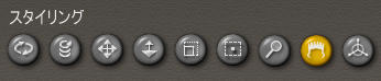 回すボタン、拡大縮小するボタン、前後移動するボタン、軸回転させるボタン。