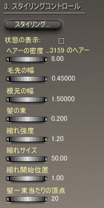 髪一束当たりの頂点は、減らしてみると分かりやすいのですが、とどのつまり滑らかに曲がった髪か、かくかくした髪かってことです。多分、マシンパワーとご相談くださいというレベルの話じゃなかろうか。デフォで20.このままで構わないと思います。