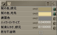 ここで、「髪の色_根元」と「髪の色_毛先」をそれぞれ設定すれば髪の色が変えられます。簡単でふ。