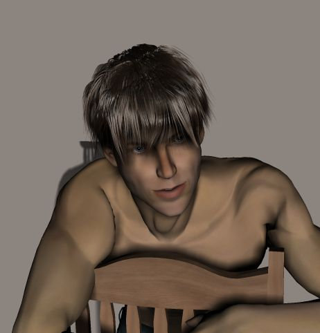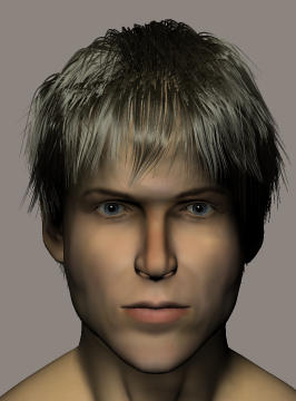 テストレンダリングしてみましたが、髪の毛がデフォルトだと金髪ですし、なんだかおじいちゃんみたいになりましたね。顔は若いのに。