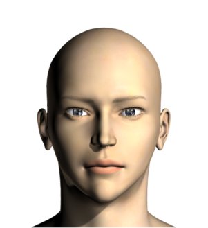 顎の一部が首になっているので、顎にヒゲの生えたテクスチャは、使うとびっくりなことになってしまいますが(首に毛が生えた状態に)、ヒゲの無いテクスチャなら普通に使えると思いますので、市販の綺麗なテクスチャを貼ってあげてください。