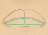 外れたアタリを見ながら、唇の輪郭を修正していきます。
