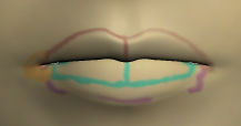 唇の輪郭が、テンプレートを見てもどこなのか分からず、四苦八苦中です。デフォルトでついてくるテクスチャは、アニメ風男の子ってことで、唇に色が入っていない(肌の色のまま)なのです。