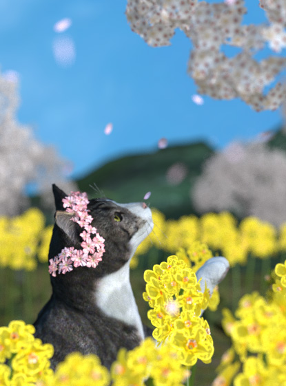 手前から2番目に設置した桜の輪郭が浮いてしまったので、そこはレタッチしました。(この画像はレタッチ前を切り取った物)