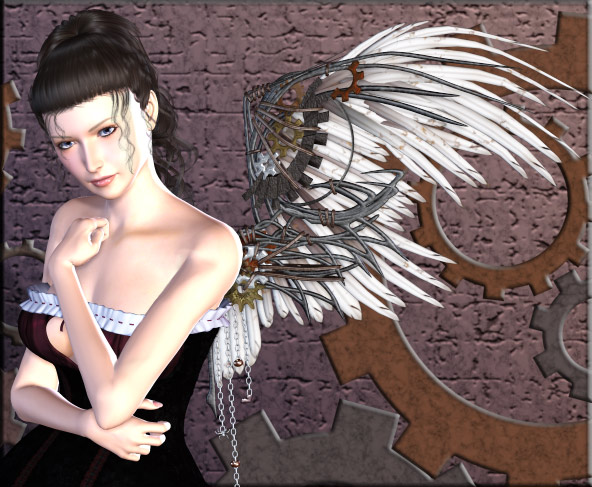 ええと、たとえば、羽の下に鎖みたいなのが付いてますが、あれも動かせませんし、羽の上部分だけを動かして開いてるみたいにしたり、逆に閉じてるみたいにしたりもできません。ただの羽の形をしたオブジェですね。